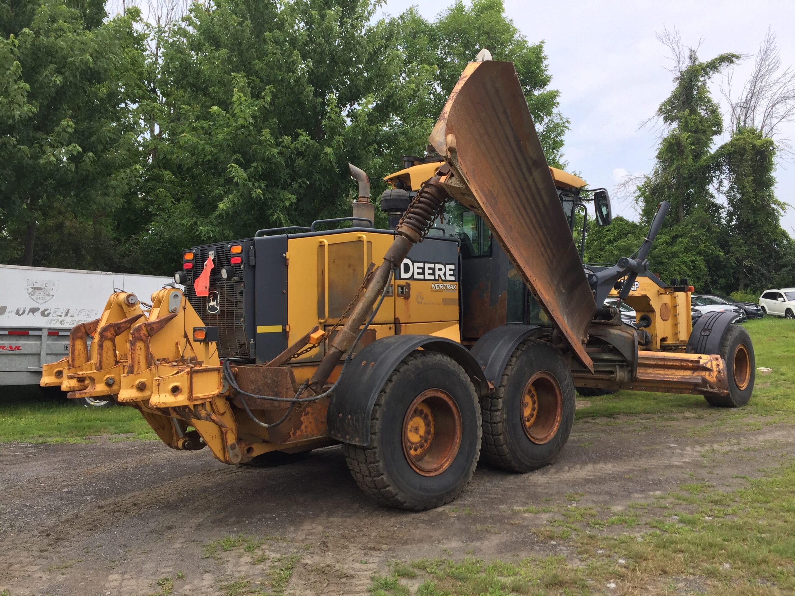 Lame centrale : 14′ – Lame latérale : 12′ – Ripper arrière 5 dent, 2 cylindres hydrauliques