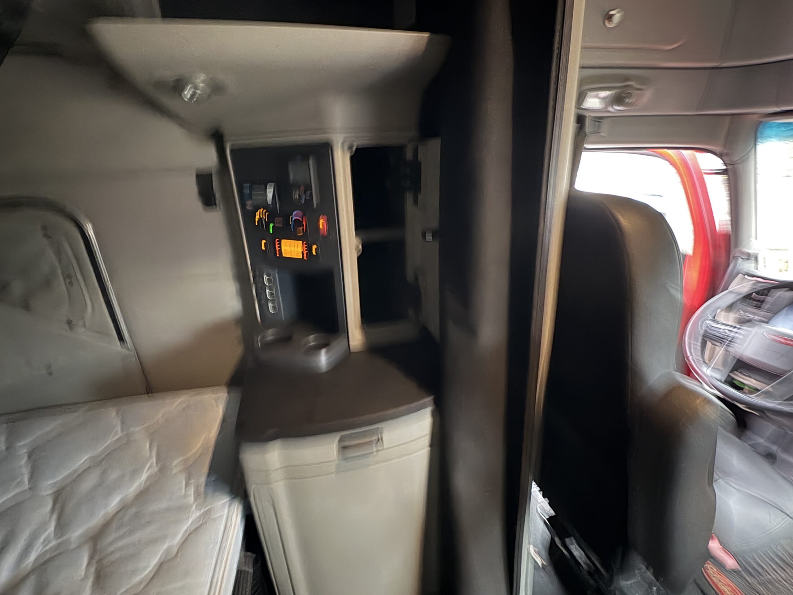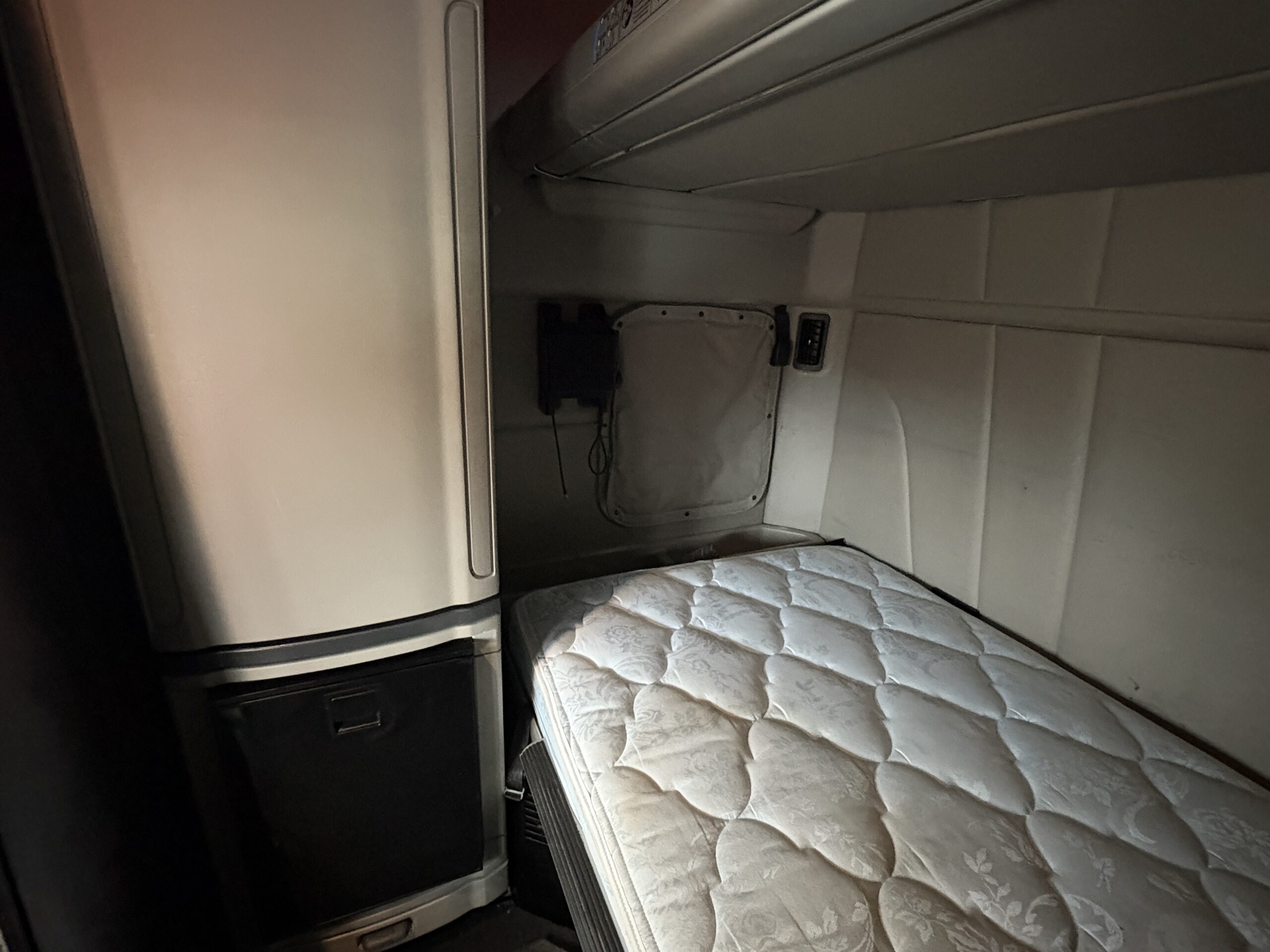 Témoins allumés – Pare-brise fissuré – Morceau de pare-choc avant gauche manquant – 2 couchettes